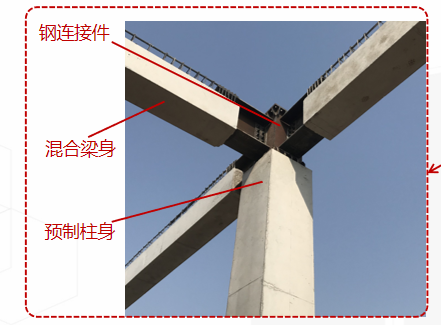中国建研院自主研发技术,在预制混凝土梁端、柱端预埋钢连接件,现场通过连接钢连接件实现梁-柱连接和柱-柱连接,将预制混凝土构件与钢结构连接方式有机结合、混合应用。预制混凝土梁身、柱身+钢连接节点=装配式钢节点混合框架结构体系(CABR-HF体系)。